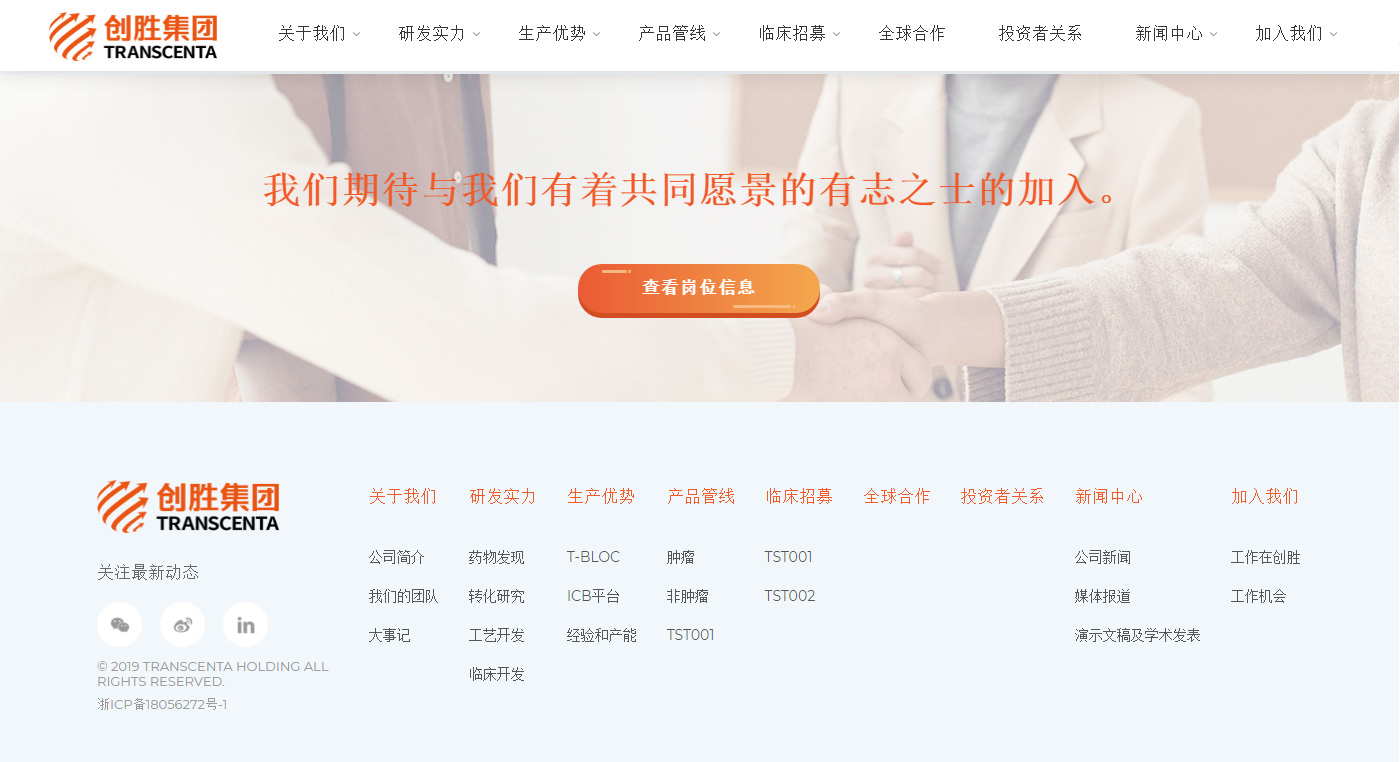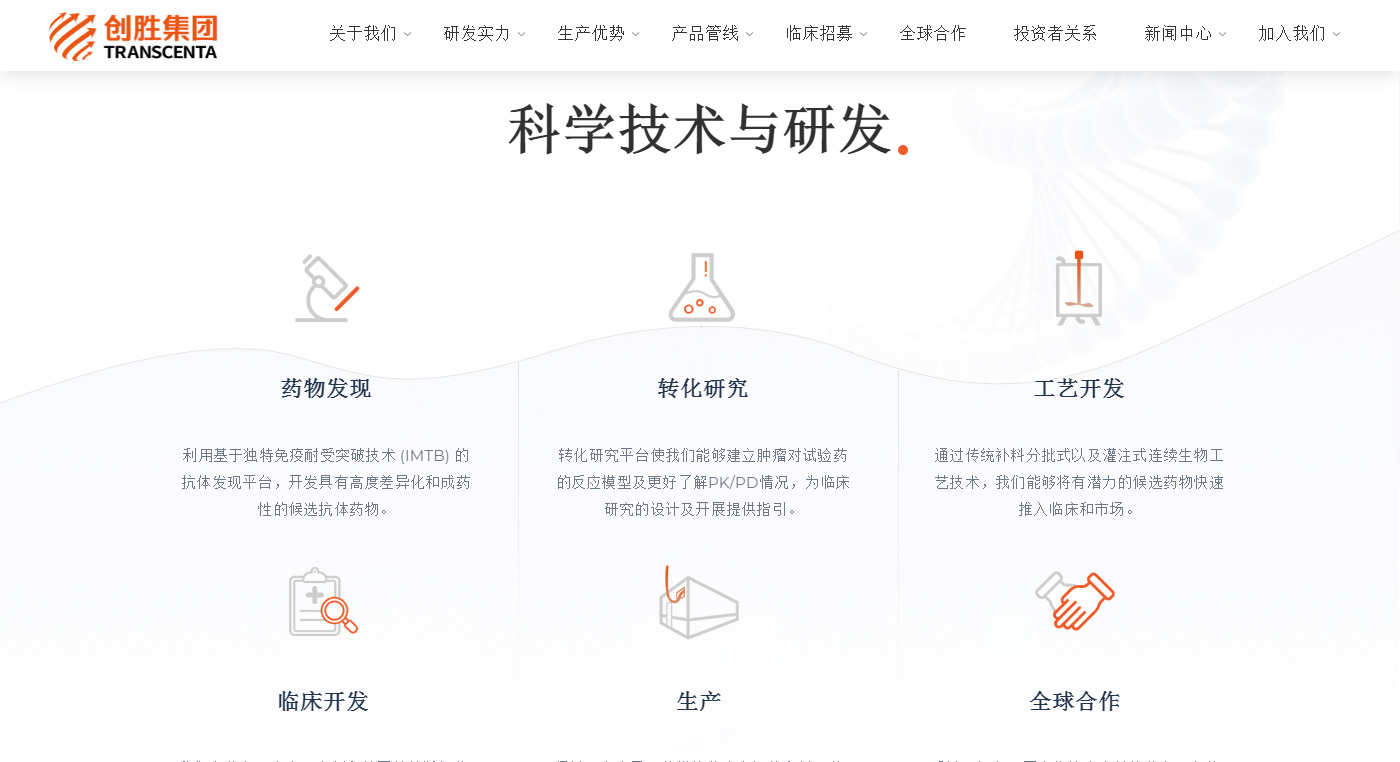 創勝集團是一家在生物藥發現、開發、法規和生產方面具有全整合能力的國際化生物制藥公司,致力于縮短從藥物靶標到BLA的時間,并應用高質量的新一代生物制造工廠,支持內部管線和戰略合作伙伴管線分子的開發和商業化。