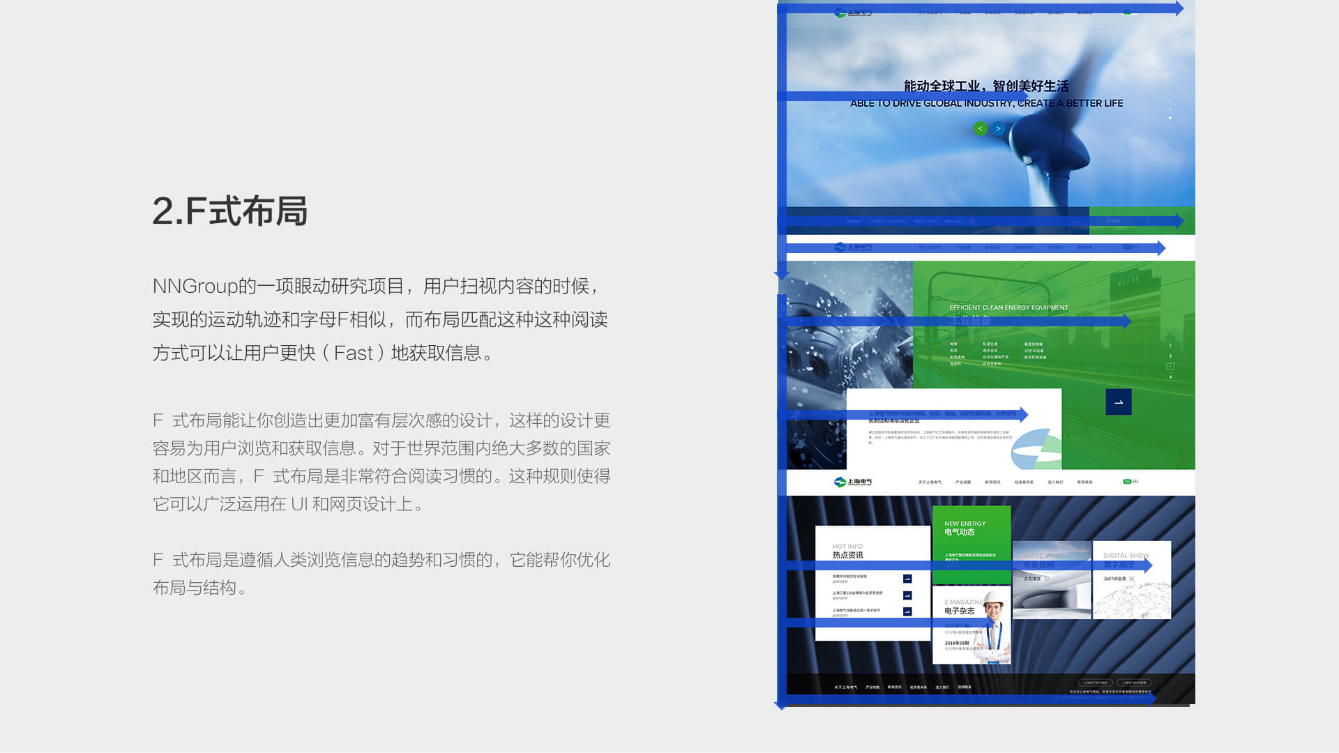 F 式布局能讓你創造出更加富有層次感的設計,這樣的設計更容易為用戶瀏覽和獲取信息。對于世界范圍內絕大多數的國家和地區而言,F 式布局是非常符合閱讀習慣的。這種規則使得它可以廣泛運用在 UI 和網頁設計上。F式布局是遵循人類瀏覽信息的趨勢和習慣的,它能幫你優化布局與結構。