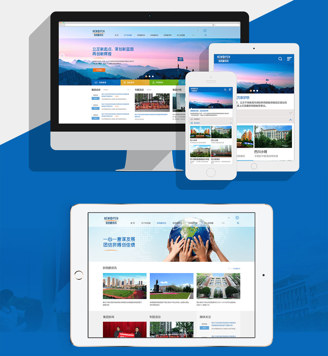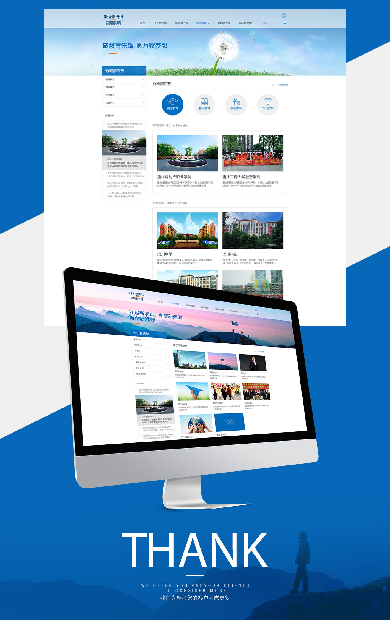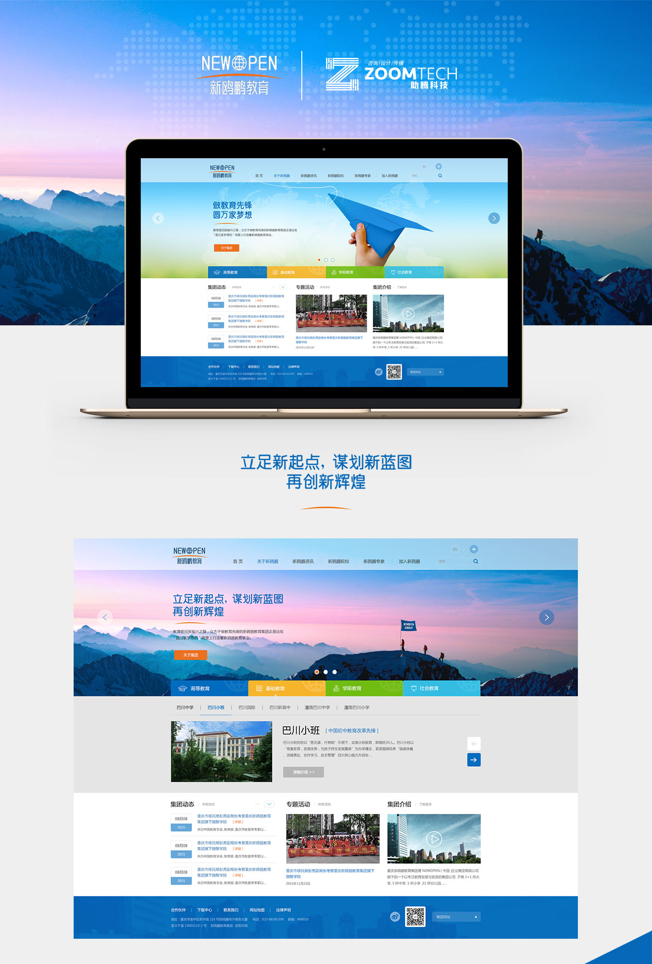 新鷗鵬集團業務涵蓋教育產業投資,地產住宅開發和物業服務。是中國最具價值影響力的教育集團企業之一。針對本次官網建設項目,除了在展現教育集團實力方面,新鷗鵬更注重的是深化其"做教育先鋒,圓萬家夢想"的品牌理念。在網站設計和前端效果實現上做了新的嘗試和突破,細節表現沿用VI輔助圖形,傳達一種與眾不同、耳目一新的視覺及體驗。