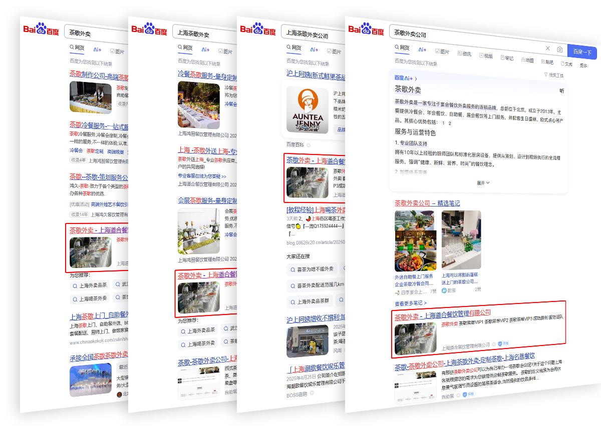 上海助騰為道合餐飲量身打造專業(yè)SEO優(yōu)化方案,聚焦“茶歇外賣”、“上海茶歇外賣”、“上海茶歌外賣公司”、“茶歇外賣公司”等核心關鍵詞,全面提升品牌在搜索引擎中的自然排名與曝光度。通過精準的關鍵詞布局、內容優(yōu)化及技術調整,助力道合餐飲在茶歇外賣細分市場中建立更強的品牌影響力,吸引更多企業(yè)活動、商務會議及私人聚會的餐飲服務需求客戶,進一步鞏固其在上海高端餐飲外送領域的領先地位,同時展現(xiàn)上海助騰在行業(yè)SEO策略上的深度能力與實戰(zhàn)成果。
